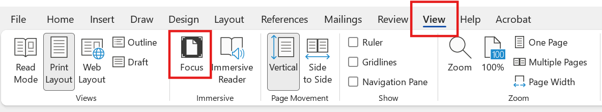 Go up. Click on “View,” then “Focus.”